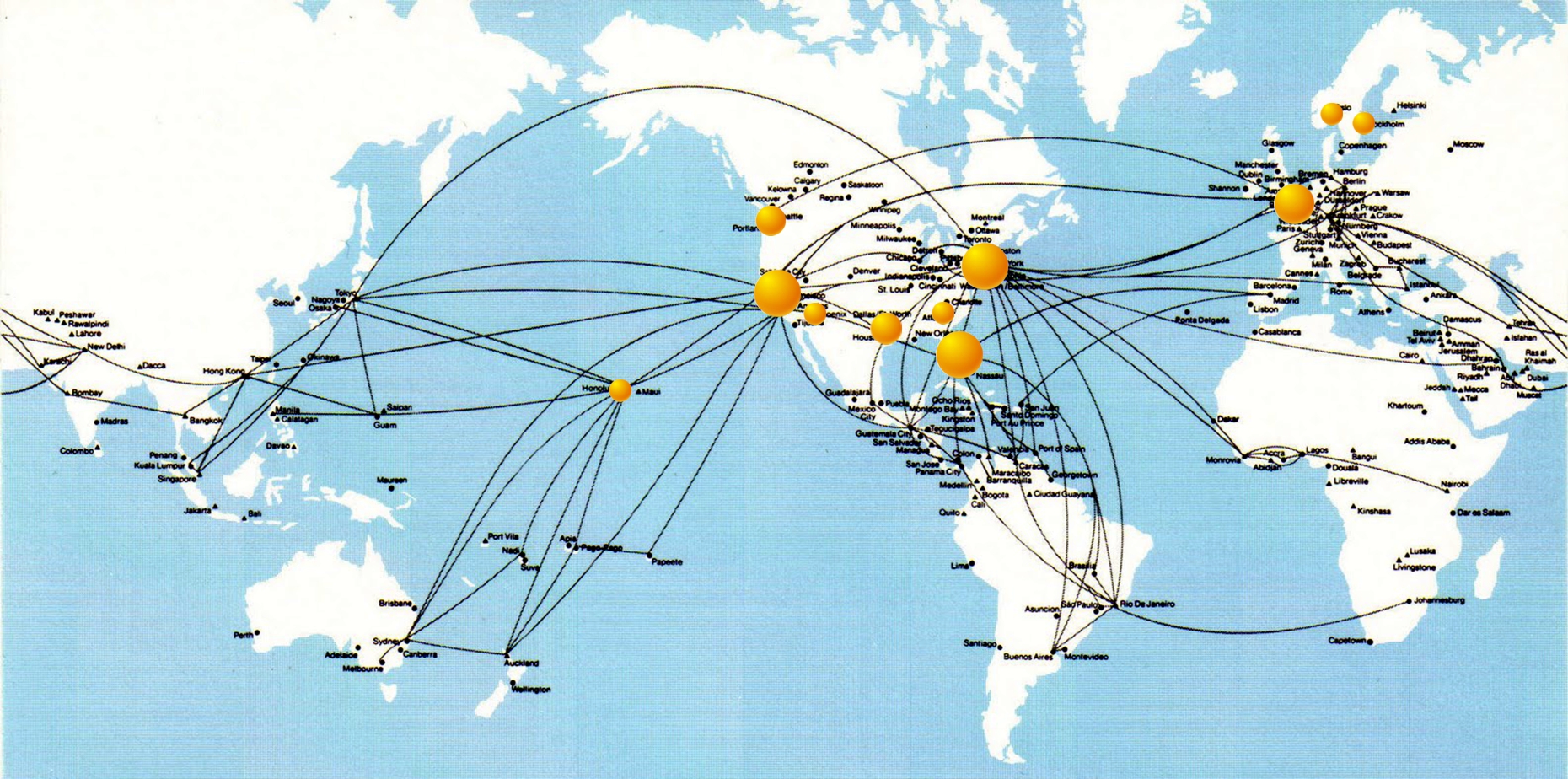 Route map of Pan American Airways® in 1979