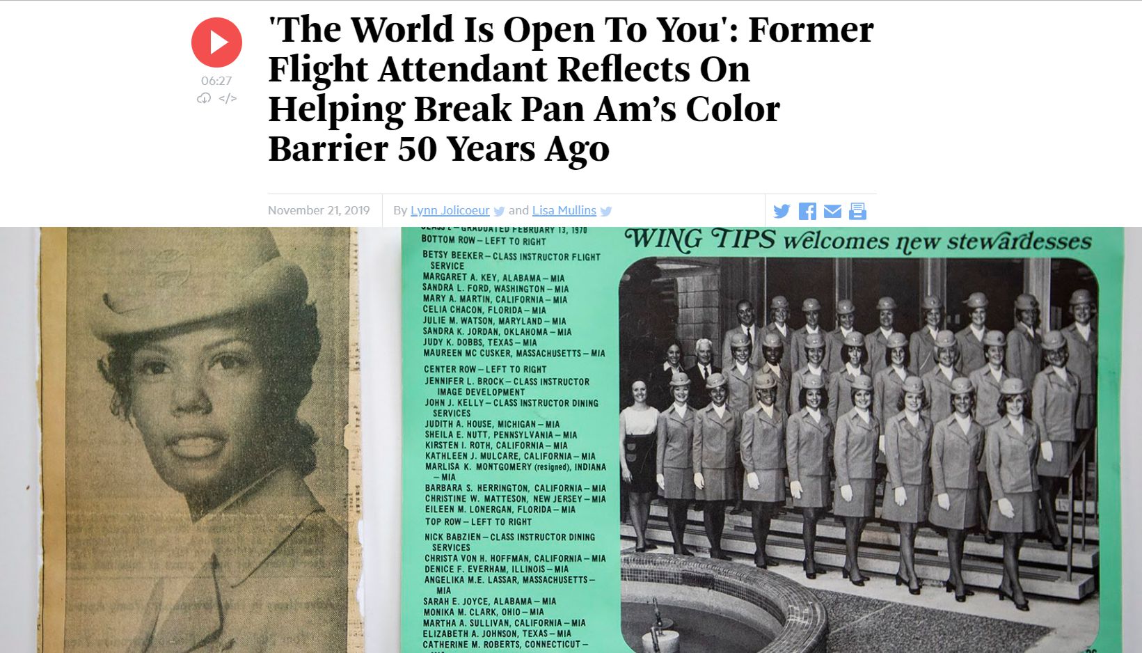 CNN Travel article: Traveling the World as one of the First Black Pan Am Flight Attendants